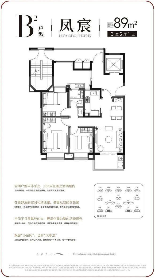 B户型 | 建面约89㎡3房户型图▼✅✅中交凤启虹桥售楼处电话:400-9016-520✅✅
