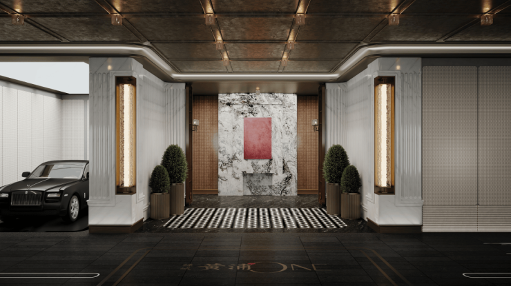 归家大堂层高约6米,融合传统门庭规制与现代酒店仪式,营造极具尊贵感的归家体验。