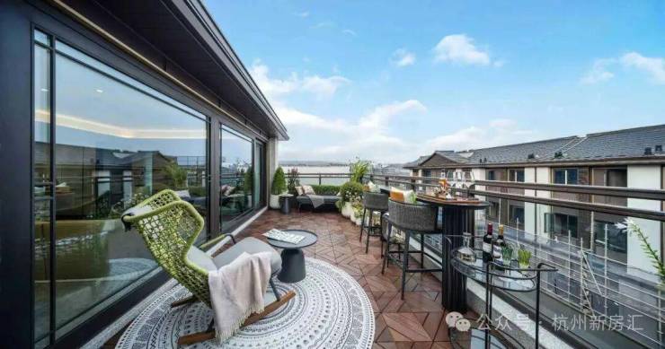 边套上叠,虽然总面积略小于下叠,但三层拥有超大的大阳台,四层还有超大的L型露台,不仅可以在家里聚会趴体BBQ,向外眺望,龙坞的茶山绿野尽入眼底。