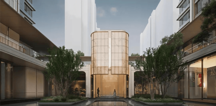 悦己显己的本真,复刻海派优雅,以高门大院礼序,约280米超尺度界面,臻选全球石材-贝克米白石材,于材质的碰撞与共生间,铺陈光影的诗意哲思,重塑当代门庭气度。