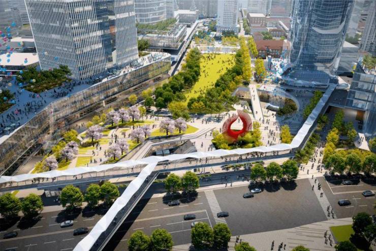 项目南侧的北外滩核心区,更是发展的重中之重。1/5的土地上,将承载了北外滩超四成的建筑体量。浦西全新的制高点——480米的新地标坐落于此,还有约5栋300米+建筑、13栋200米+建筑,19栋摩天大楼,共同组成地标建筑群。