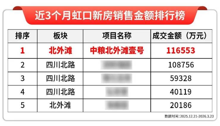 透过网签数据我们也能看到,中粮北外滩壹号揽金11.7亿拿下近3个月虹口区销冠宝座!