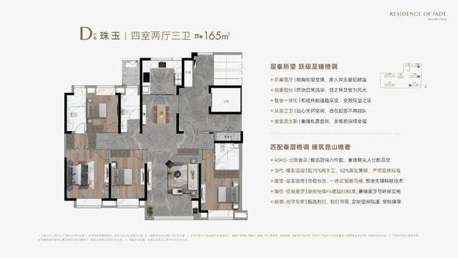 D户型 珠玉丨四室两厅三卫 建筑面积约165m²