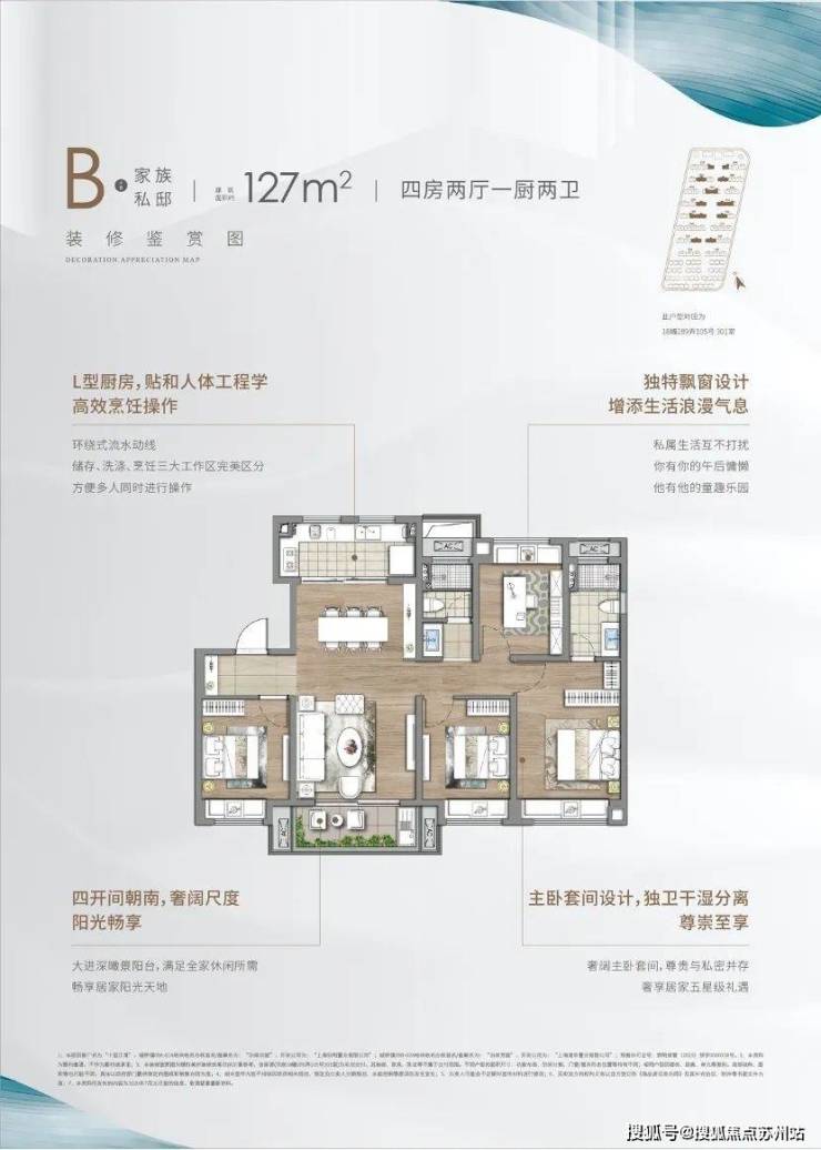 约127㎡户型是洋房的旗舰户型,采用了奢华的四开间设计,户型布局三卧室朝南,贴合当地的生活习惯主卧采用全套房设计,同时与主卧相邻的次卧室可以根据小业主的自身需要,同主卧室灵活合并。