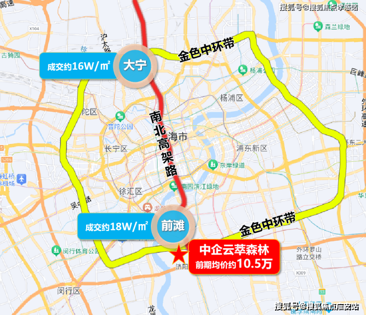 在此之前,同样背靠“南北高架+金色中环”一飞冲天的板块有两个。