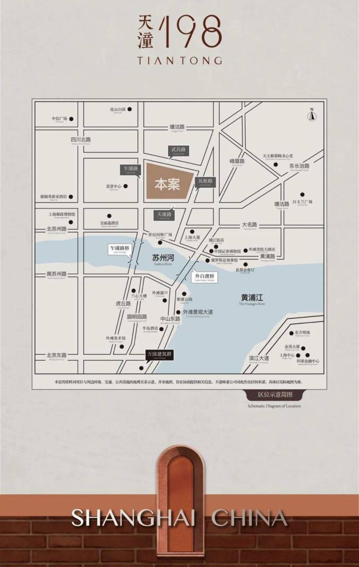 天潼里位于内环内北外滩核心,天潼路近乍浦路口,独占江(黄浦江)河(苏州河)交汇上佳钻石地段,距离外白渡桥仅200余米。