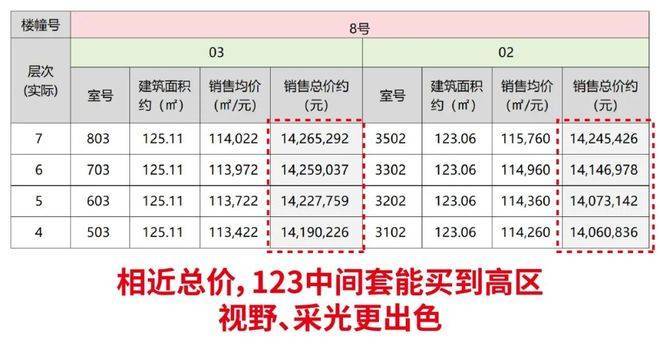 高区优势同样不容小觑。8栋中间套高区的楼层价差仅为100元/㎡/层,对于追求优质采光和开阔视野的购房者来说,完全可以“从高往下选”,以极小的成本增量锁定更佳的居住体验。