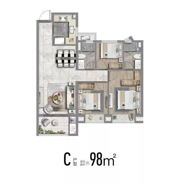 回归产品本身,映辰二期户型种类很丰富,建面约77-123㎡多样户型,选择面更广