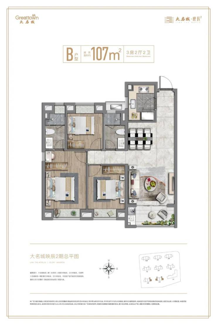 「大名城·映辰」二期在产品的打造上别具匠心。项目由双股上市房企 、2023年房地产上市公司综合实力50强——【大名城】匠心打造,传承“紫金系”精工品质,在深刻洞察时代青年的居住需求后,二期新品在一期的基础上,进行多维度的升级,敬献亲水活力社区。