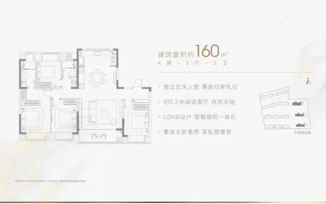 建面约160㎡户型:4室2厅2卫设计,南北通透,主卧套房带独立卫浴和步入式衣帽间,客厅连接景观阳台,厨房采用U型布局,动线合理