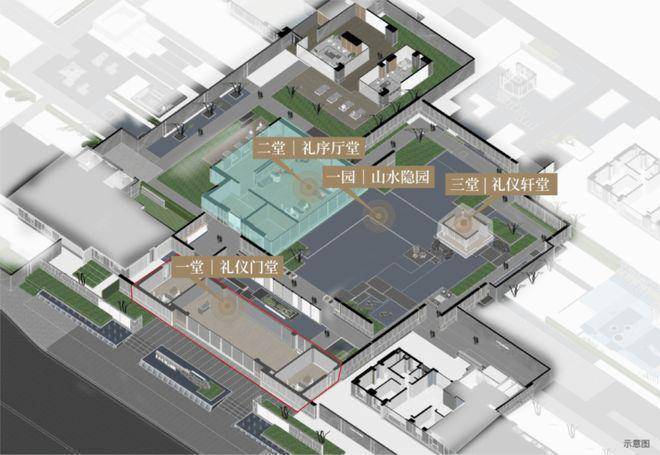 社区内部以"两轴、三带、六进"空间格局打造宋代美学园林,营造四季可游的东方雅致生活场景