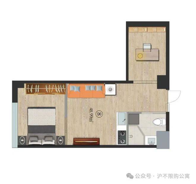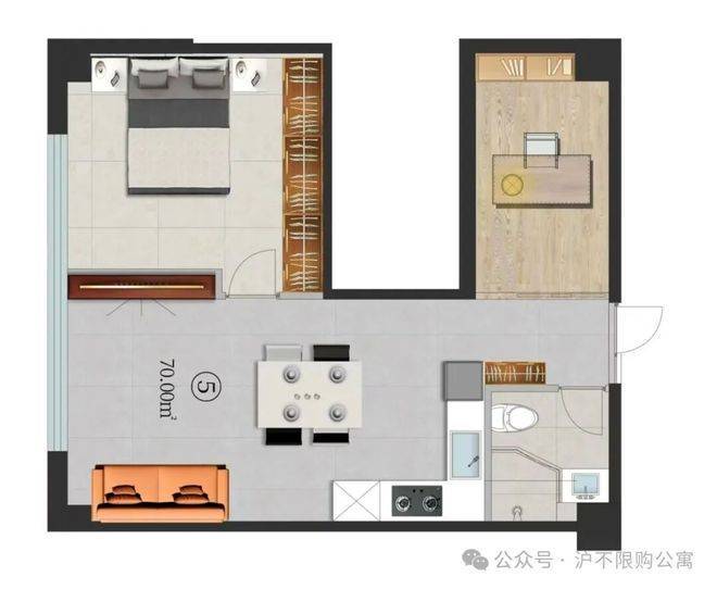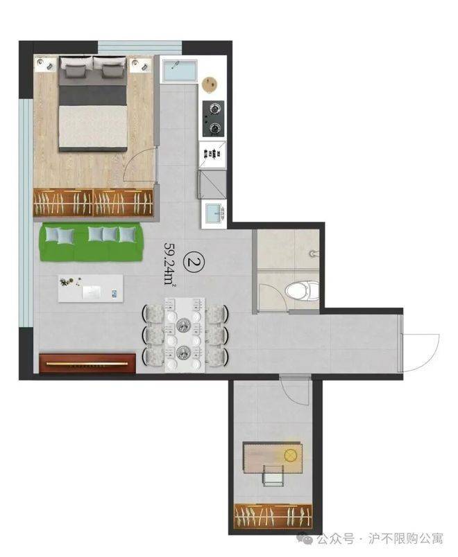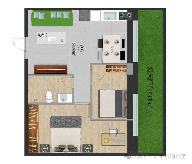 03室,57.91㎡ 东北边套全明带大露台 235万