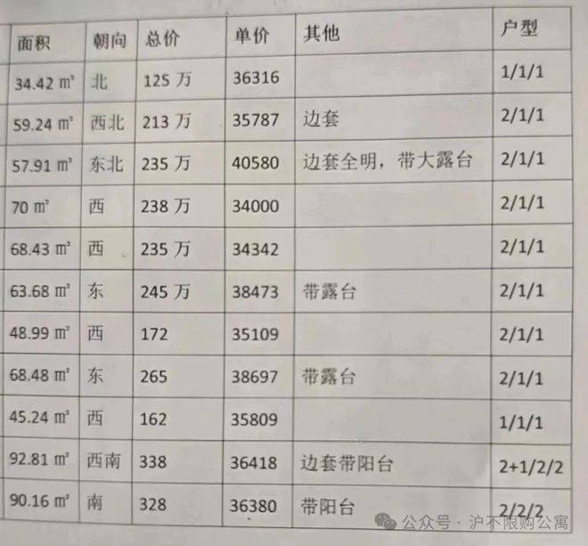 户型面积 34-45-49-58-63-68-70-90-92 m²