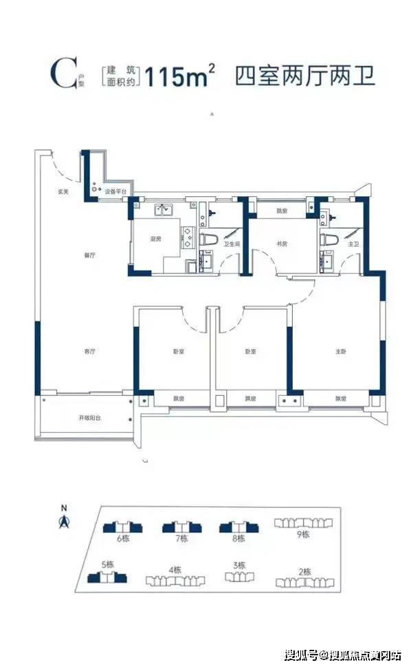 约96㎡-115㎡3-4房户型,特别是刚改、改善客户的优选户型。