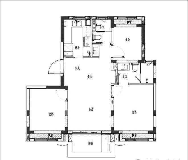 一梯两户,层高3.05米,相当于99竖厅户型的缩小版。南北直通,全卧飘窗,南白整体面宽约9.75米,其中客厅面宽约3.55米,主卧面宽约3.2米