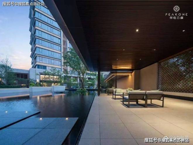 景观设计:园区由 3 幢半围合建筑而成,水浪纹艺术小品与叠水台阶相映成趣,营造出贵隐江河汇的宁静与从容。同时,追随日本景观酒店虹夕诺雅造园手法,设置了御道觅影、海塘观潮、叠水望川等主题景观2。