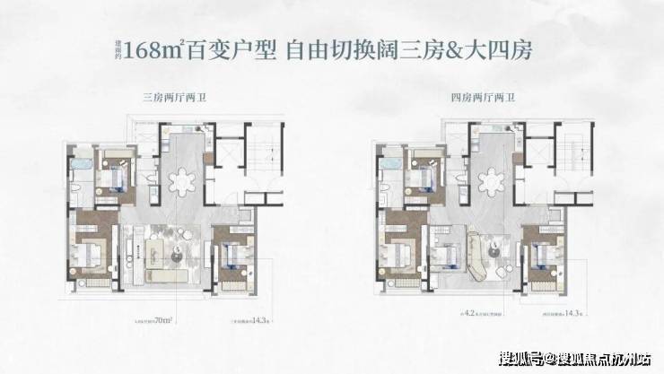 精装湖景平邸——以“灵动通透、全周期适配”为导向,建面约168㎡户型设计了2款空间方案,既可选择大三房、也可享受阔四房。“大面宽、短进深”的格局显著提升了空间的通透感与采光面,并结合部分户型的景观优化,实现推窗见湖的视觉延伸。灵活转换的“百变”空间设计,能从容应对从二人世界、三口之家到多代同堂的家庭结构变化。国际一线精装品牌与独立电梯厅的配置,则在细节中夯实了归家仪式感与日常生活的品质基底。