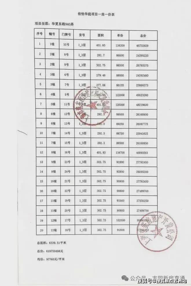 01.项目一房一价表