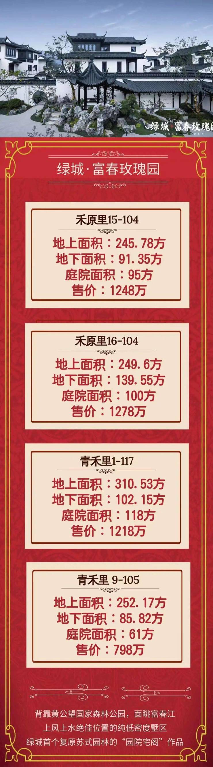 绿城富春玫瑰园:背枕黄公望俯瞰富春江!粉墙黛瓦、廊坊巷院||800多万现房中式合院!