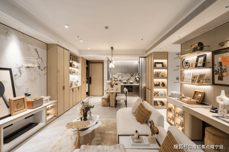 看不见的巧思——立体收纳系统:项目层高达到3.1-3.3米,借此优势创新打造了“竖向收纳”体系,通过顶部储物柜、机舱式高柜等设计,将垂直空间利用到极致,小户型也能拥有大宅的储物容量。