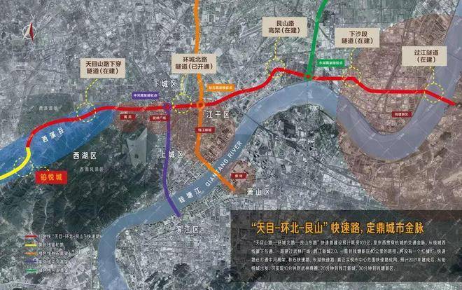 天目-环北-艮山快速路,2022年5月底天目山路段先贯通,基本无红绿灯,从项目出发可实现20分钟到武林商圈,30分钟到钱江新城,45分钟到钱塘新区(环北-艮山路段在建中,通畅时45分钟到大江东)纵贯东西。