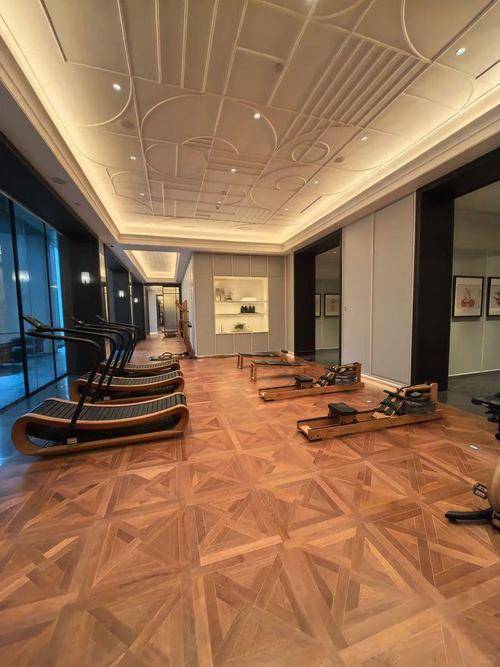 轻法式风格高定瑜伽室,镜面雕刻暗藏巧思,以现代化手法演绎ARTDECO图形元素,延续健身空间美学。
