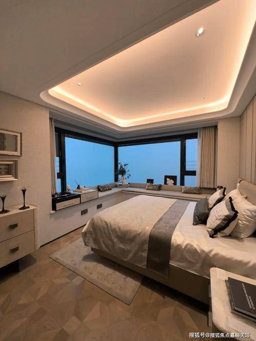 主卧约270°L形飘窗设计,将窗外的美景尽收眼底,注重美观的同时,也兼顾了实用性与舒适性,让业主在繁忙的生活中也能享受到宁静与安逸。