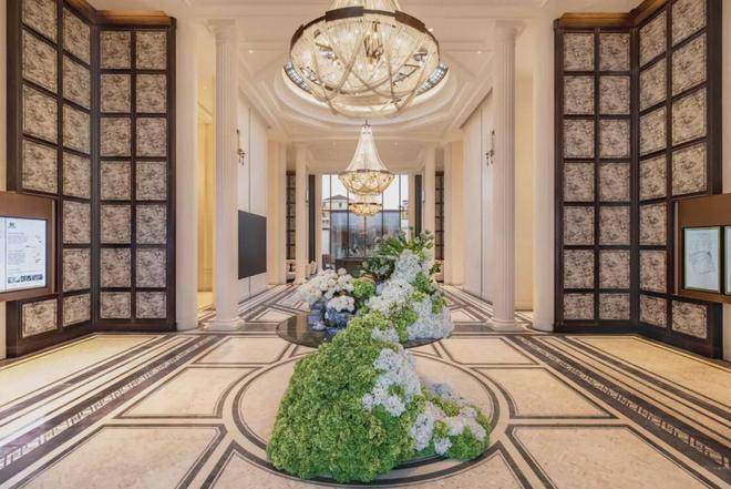 不计成本打造大量定制化米黄色石材饰面、奢玉、奢石搭配海派金属的装饰,细节与调性堪称板块标杆!