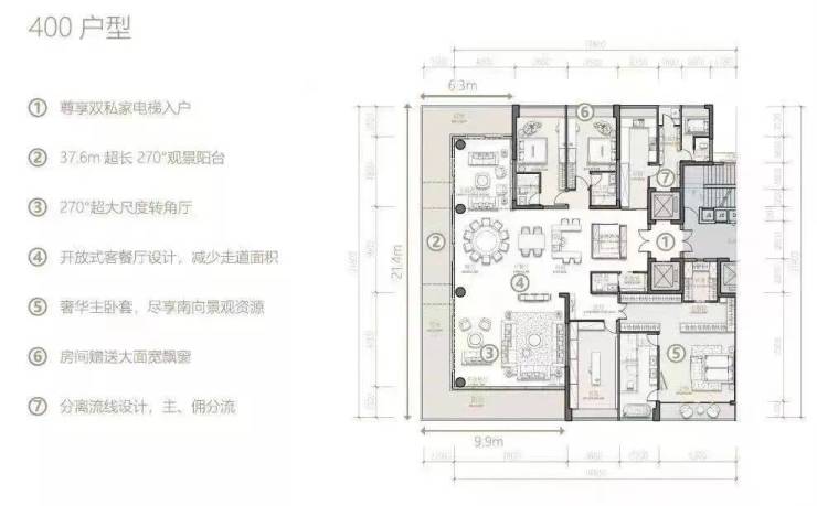 附赠面积有内外庭院、阳台、露台