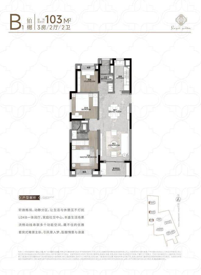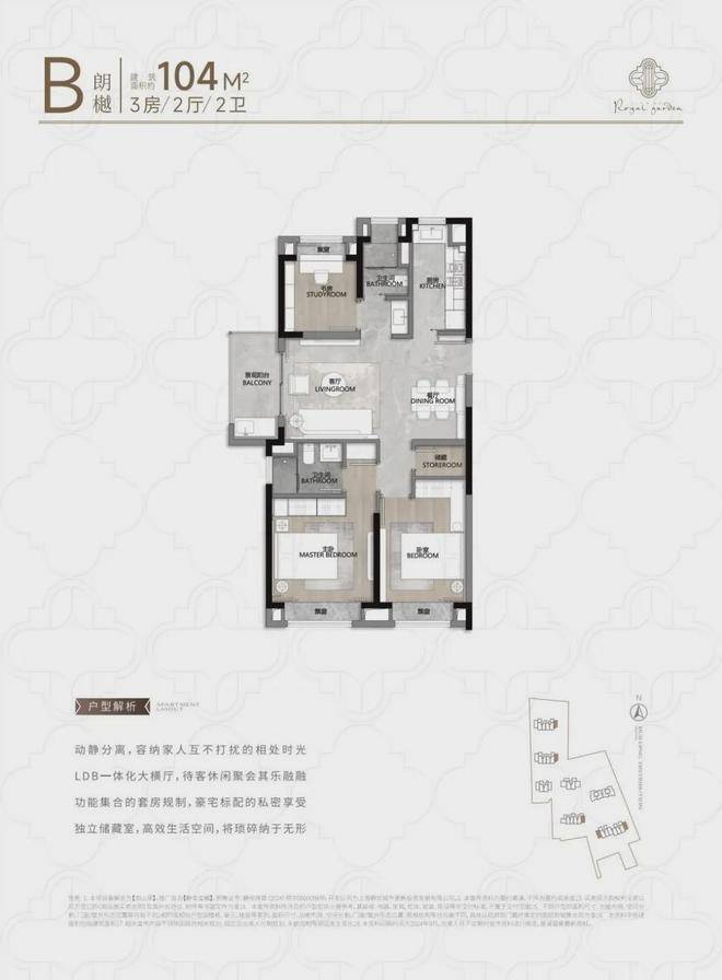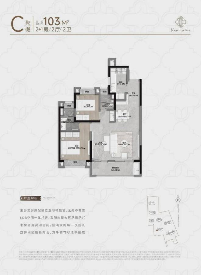 104㎡3户型特点:该户型多为楼栋的东边套,是一个观景户型。客厅连接270°阳台,视野出众。双卧朝南,✅静安玺樾售楼处电话:400-9688-923✔️阳光满溢。从次卫布局看,如果家庭人口较少,该户型还能做成双套卧。