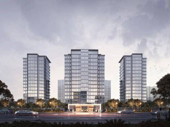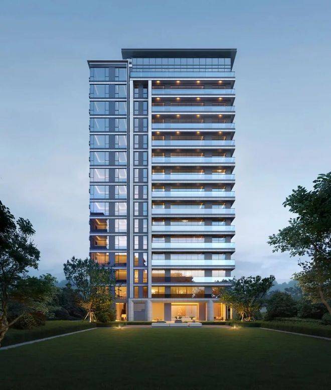在外立面标准段,所有阳台及窗户上下口均采用铝板线条包边,同时外立面材料摒弃传统真石漆,采用高端的一体板设计,在嘉兴市面非常稀缺,超高窗墙比,大面积玻璃幕墙形成全面屏风景,分缝考究,建筑整体挺拔,干净整洁。