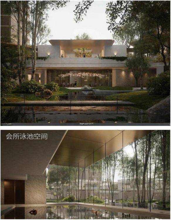 会所环绕着中心水苑展开,泳池、健身、瑜伽、私宴与茶室都被包裹在其中;连地下空间也被赋予自然的渗透,约30米面景的中央车站大厅,将光与绿意引入地库,让归家像步入一座埋入自然的殿堂。