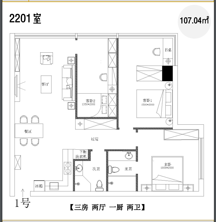 107平3+1房