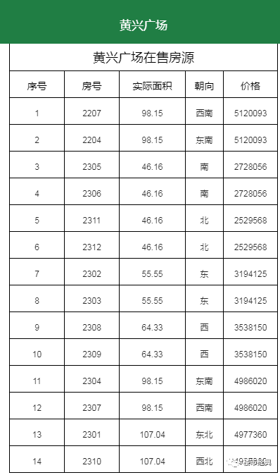 在售面积:46/55/64/98/107m²。
