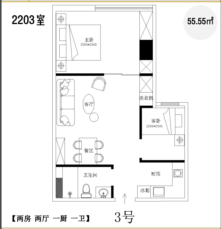 55平2+1房
