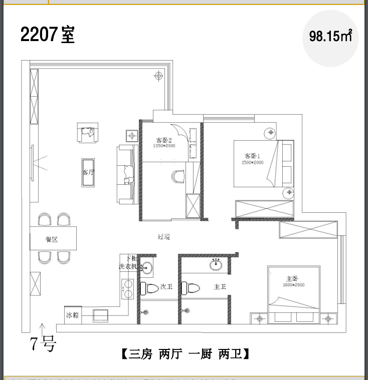 98平3房