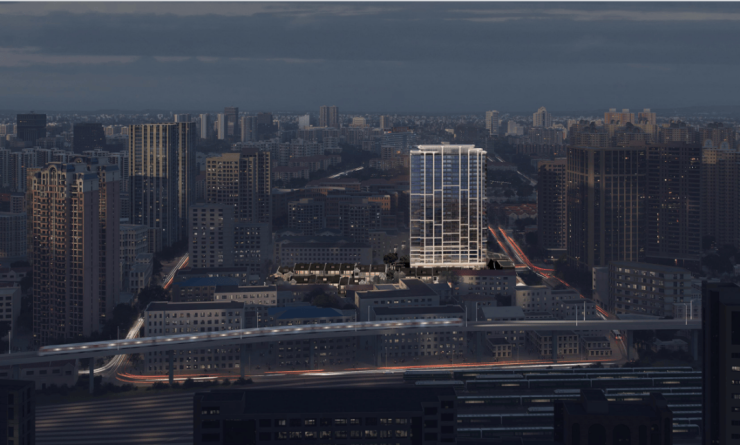 本案采用区别于传统项目的“帽子”式塔冠,向上延伸,展现向天空生长的生命力。以中国传统展示珍奇艺术家具“多宝阁”为设计源点。