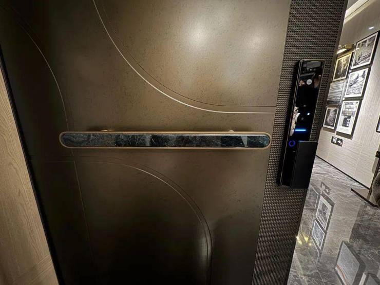 除此之外,整个室内还运用了大量的奢石点缀:翡翠绿玉石门把手,徐汇滨江3000w+豪宅同款~