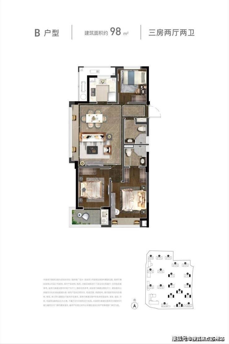 户型面积约89–96-98-99㎡三房两卫