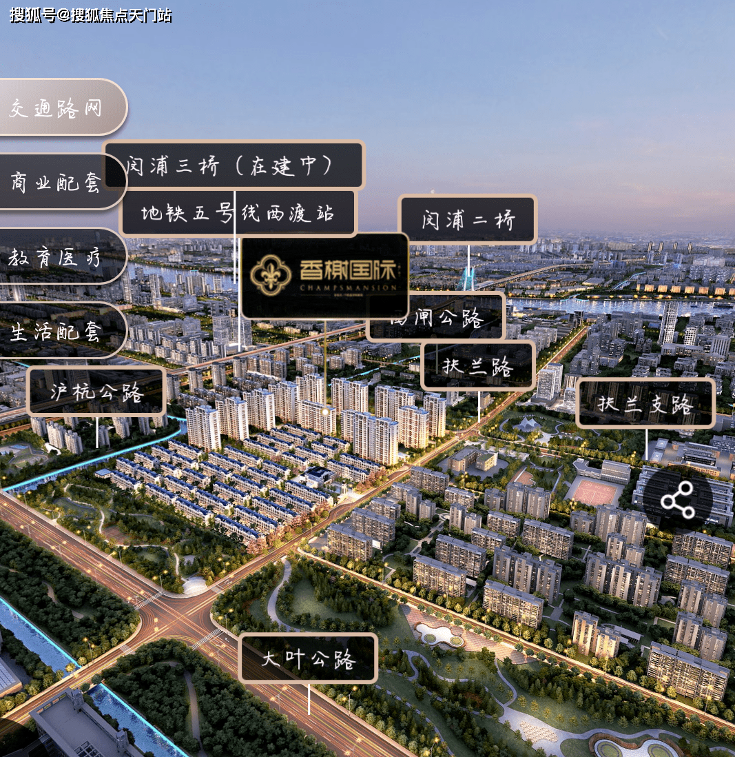 项目距黄浦江直线距离仅约1.2公里,对岸就是是紫竹科学园区,聚集了大量高新产业和世界500强研发总部。另外,西渡站也是5号线进入奉贤的首站,这意味着如果你住在中国铁建·香榭国际,通勤老闵行会非常便捷。