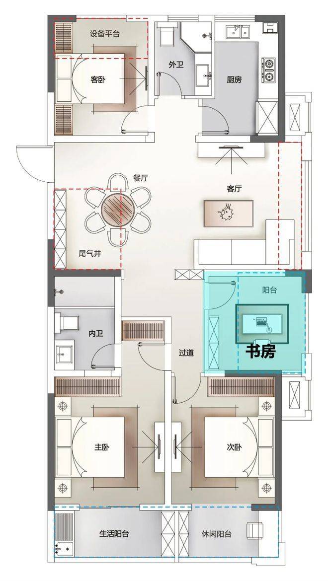 三个阳台+飘窗设计,收纳更多清风和暖阳,构筑多样的生活场景: