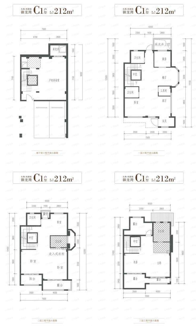【户型面积】:约171㎡、约195㎡、约212㎡、约243㎡