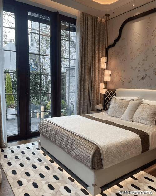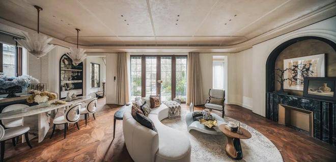 利用本身超大面宽属性,做出非常大的落地窗,这些窗又用很多传统的线条将它进行分割装饰,连续方格长窗,既保障了室内通透采光,又还原了花园别墅的线条美感与风情。