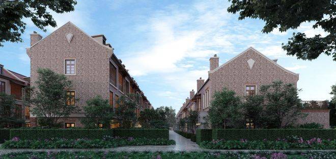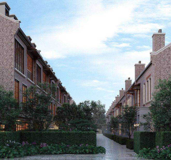 项目传承鱼骨行列式街巷肌理,打造一轴五巷海派花园墅境,一条南北主弄串联四条支弄,步移景异。