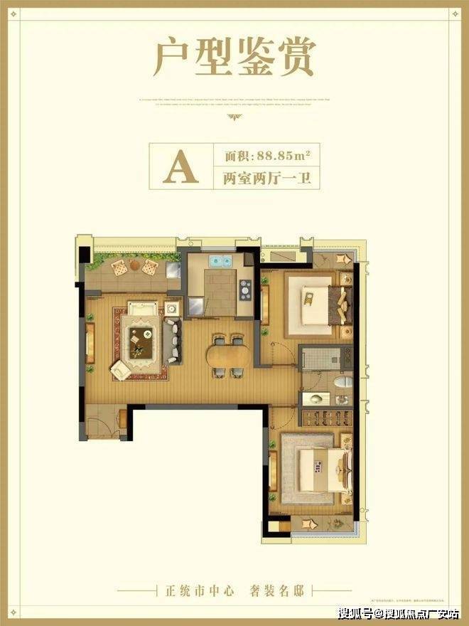 A户型:建筑面积与88.85㎡2房