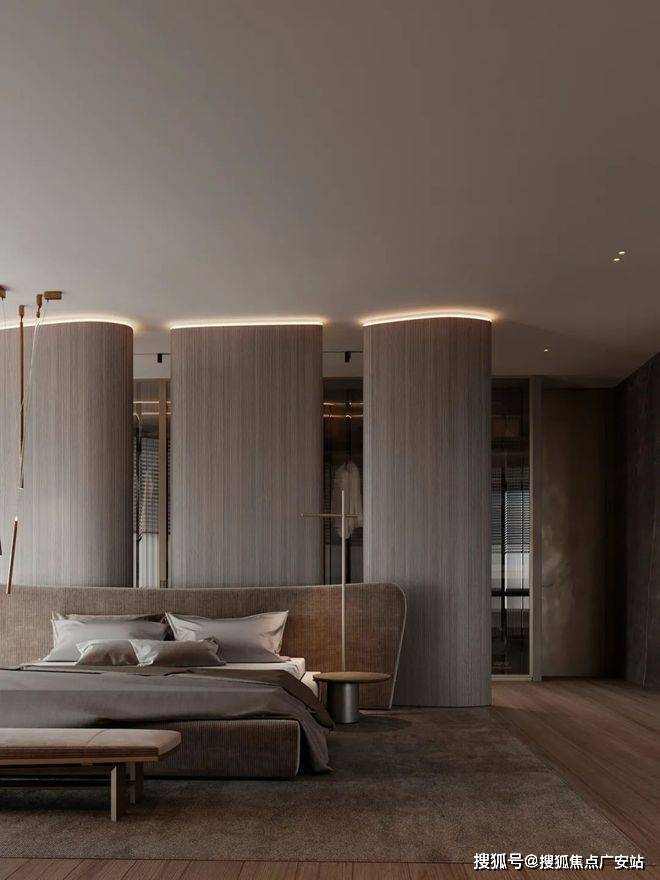卧室空间设计得非常宽广,大面积的落地窗,给整个卧室带来了充足的光源。