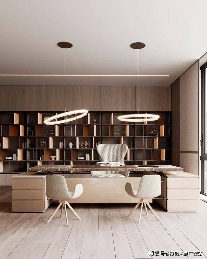 浴室的细节设计让人感受到线条的美,书房的收纳柜满足了使用者的收纳喜好。同时,吊灯和灯子的相互搭配也给这个空间带来了不一样的对称美。