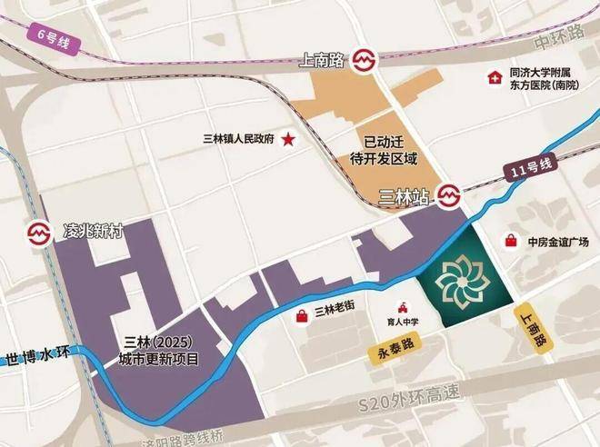 轨交方面:项目与11号线三林站直线距离仅约200米,步行可达,进站后1站直达前滩,2站即达徐汇滨江。