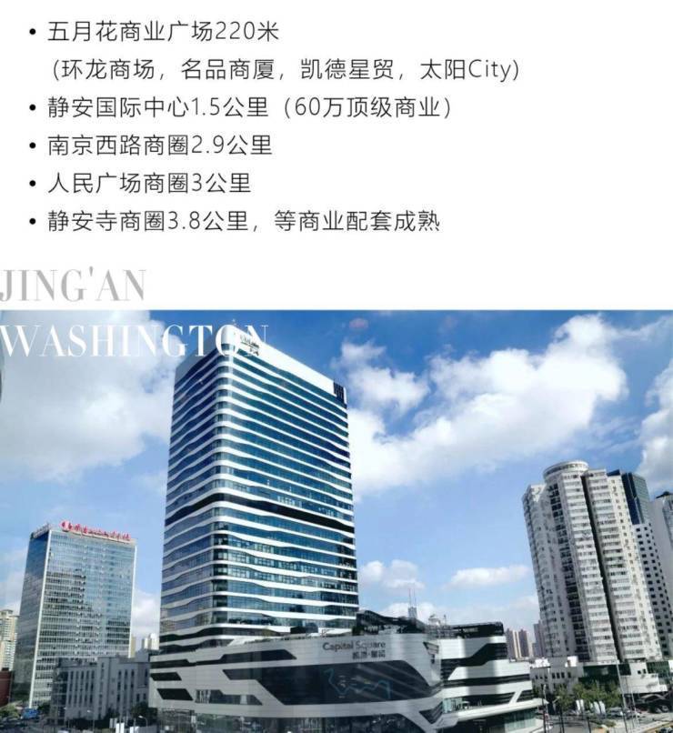 商业配套:直线距离静安寺商圈2.5公里,大悦城、久光百货等高端商业15分钟车程。1