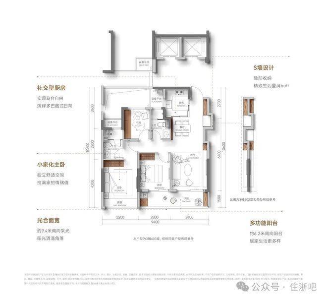 【光合面宽】约9.4米南向采光,阳光洒满角落